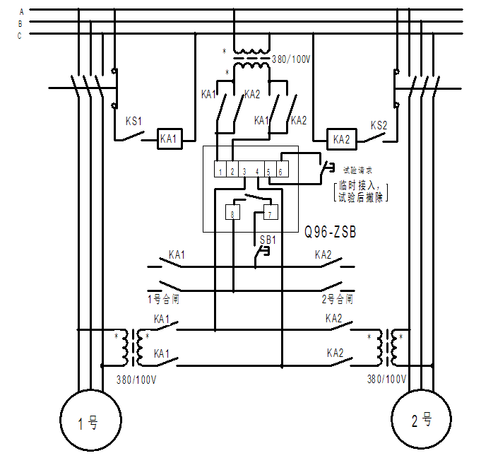 - 當(dāng)同步表用于多臺發(fā)電機系統(tǒng)時,應(yīng)使各發(fā)電機至同步表輸入信號端間的轉(zhuǎn)換開關(guān)觸點相互聯(lián)鎖(見參考接線圖中的KS1、KS2)。