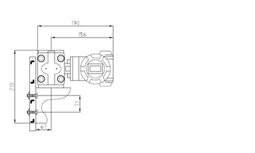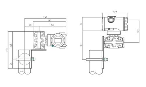 變送器安裝于2英寸管道上的支架 變送器垂直安裝于2英寸管道上的支架