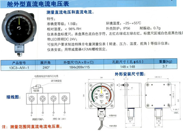 產(chǎn)品名稱:艙外形直流電流電壓表